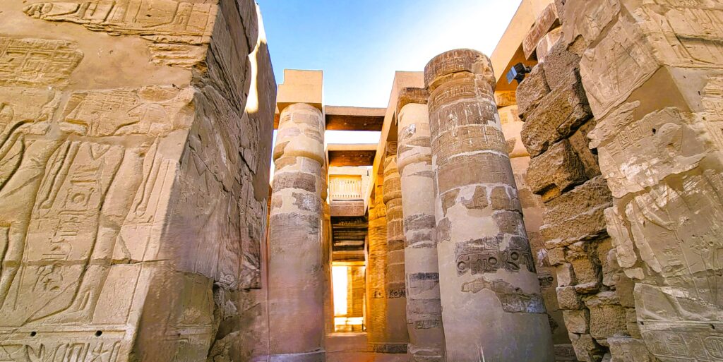 Your body instinctively follows the steps of the pharaohs and the queens escorting a procession of a pantheon of Gods and Goddesses. With every breath, you absorb cosmic light coming in through the huge columns, which have absorbed and stored the energies of the daily sacred singing and chanting done at dawn, while the priests and priestesses walked down the processional path to the Holy of Holies.